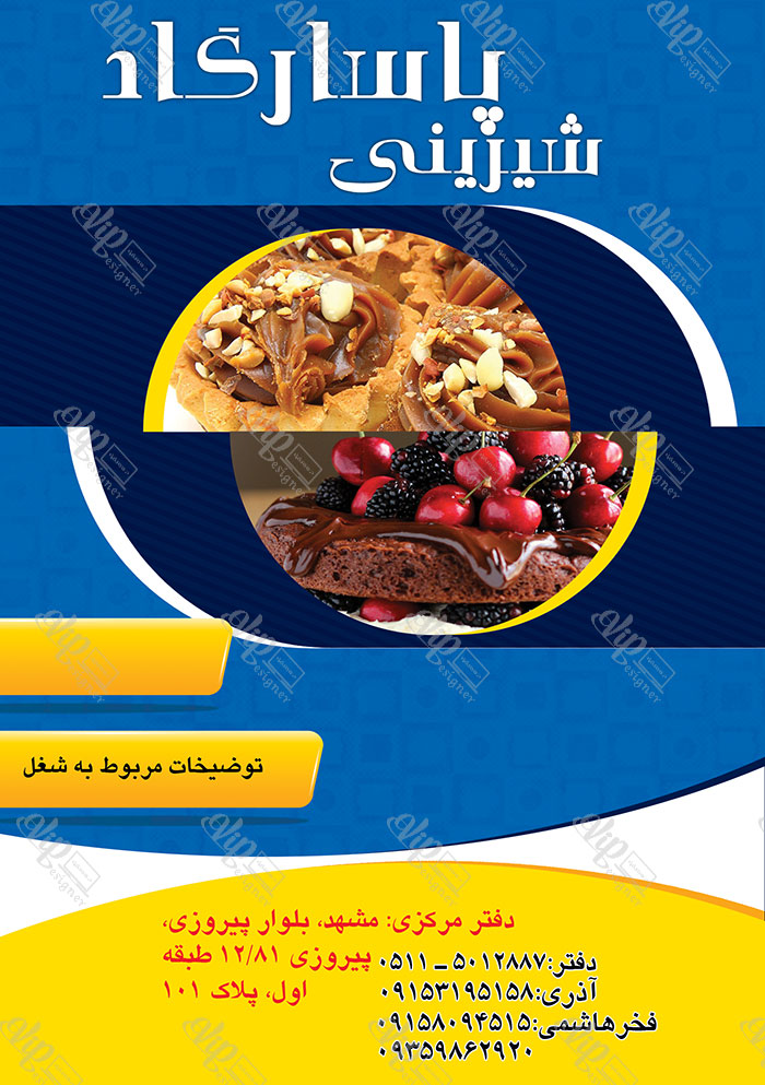 تراکت مرکز کامپیوتر قابل استفاده برای کلیه مشاغلی که در زمینه قنادی و شیرینی فروشی فعالیت دارند.